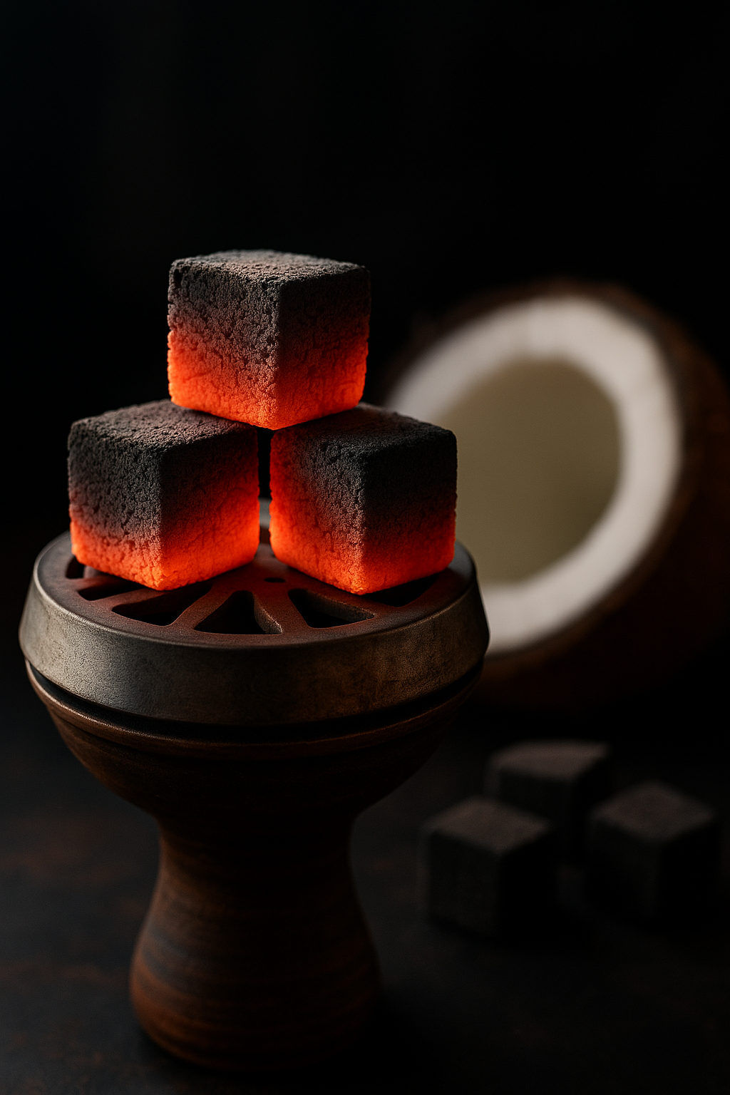 nur hochverdichtete, reine Kokosschalenkohle, die sauber glüht und Deinen Tabakgeschmack nicht verfälscht.